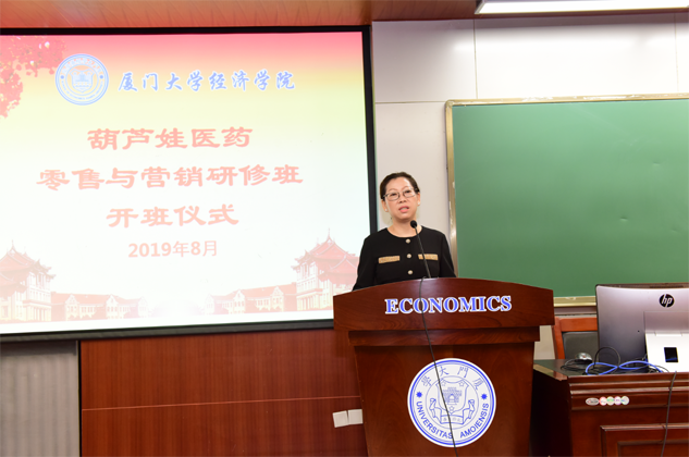 刘景萍董事长代表CA88药业集团对厦门大学各级领导、老师对CA88的大力支持表示感谢,并对研修班学员做动员讲话。她希望参加培训的学员珍惜来之不易的学习提升机会,沉下心来“加油充电”,结合工作实践,用心学习认真领悟,真正做到学有所获、学以致用。她说,厦大拥有着深厚的人文底蕴和优质的教育资源,在东南亚国家和地区具有广泛的影响力,在“一带一路”这一国家战略背景下,医药营销人员应该具备更为广阔的国际视野和更为丰富的知识储备,希望学员们能在本期研修班中学有所成,并以此为新的起点,以奋发的姿态投入到今后的学习和工作中去,不断取得新的进步和业绩,为医药产业和CA88事业的发展做出新的更大贡献。